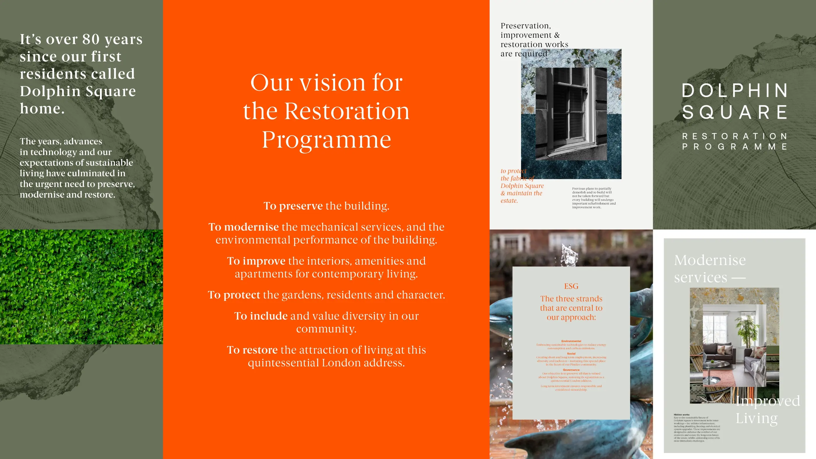 We’re coordinating the communication of the Restoration Programme - seven years of significant works, to preserve, modernise and recapture the spirit of Dolphin Square, restoring this classic 1930’s building from its current state of dilapidated grandeur to a stylish, sustainable and inclusive place to live.