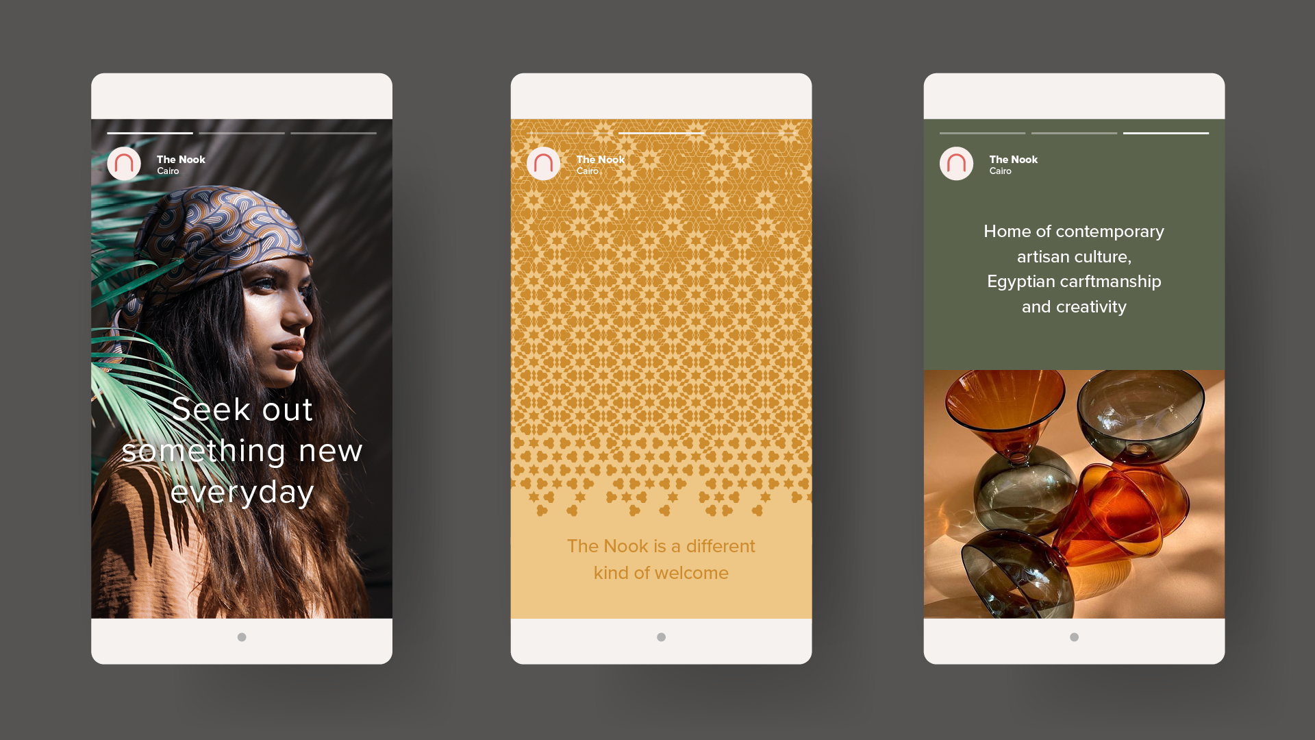 Provenance was key - we developed a brand narrative that would communicate their story within the local community, and the international online audience expressing pride in Egyptian heritage and the Nook’s restless passion to explore creativity in new and contemporary ways.
